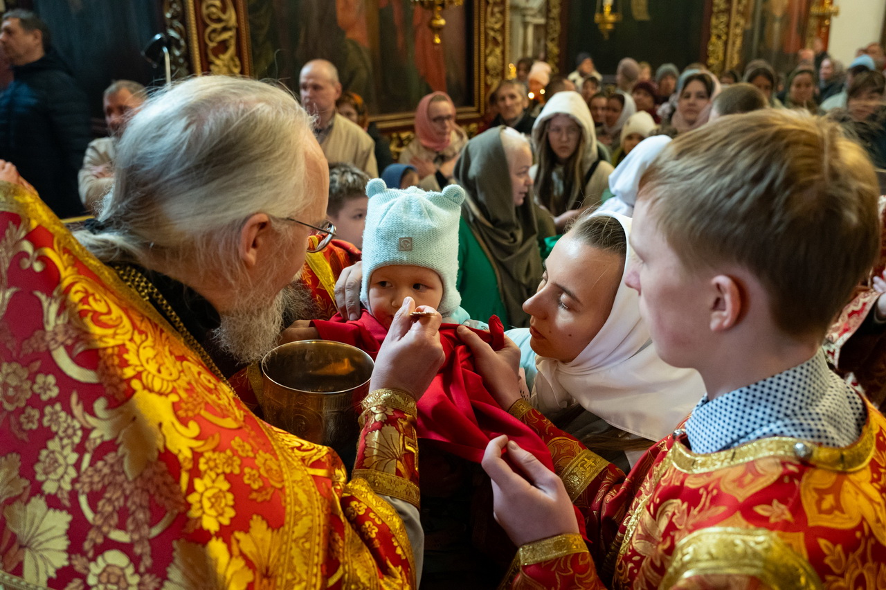Песнопения Литургии исполнил Архиерейский хор под управлением Марии Быковой. За богослужением молились прихожане кафедрального собора и паломники.