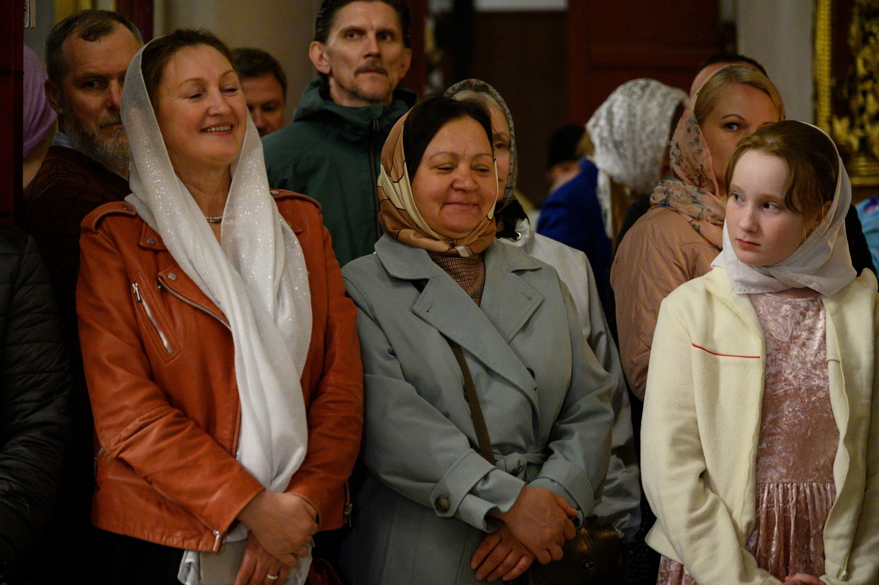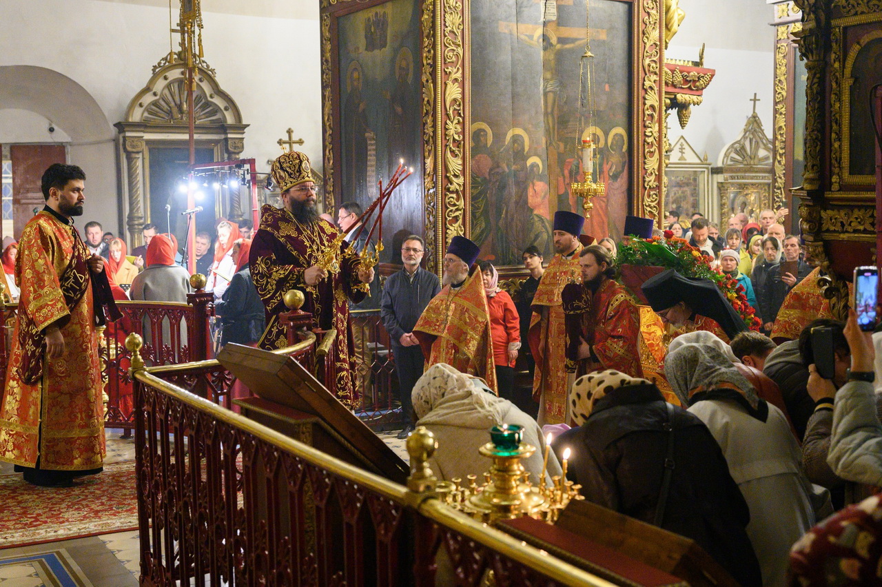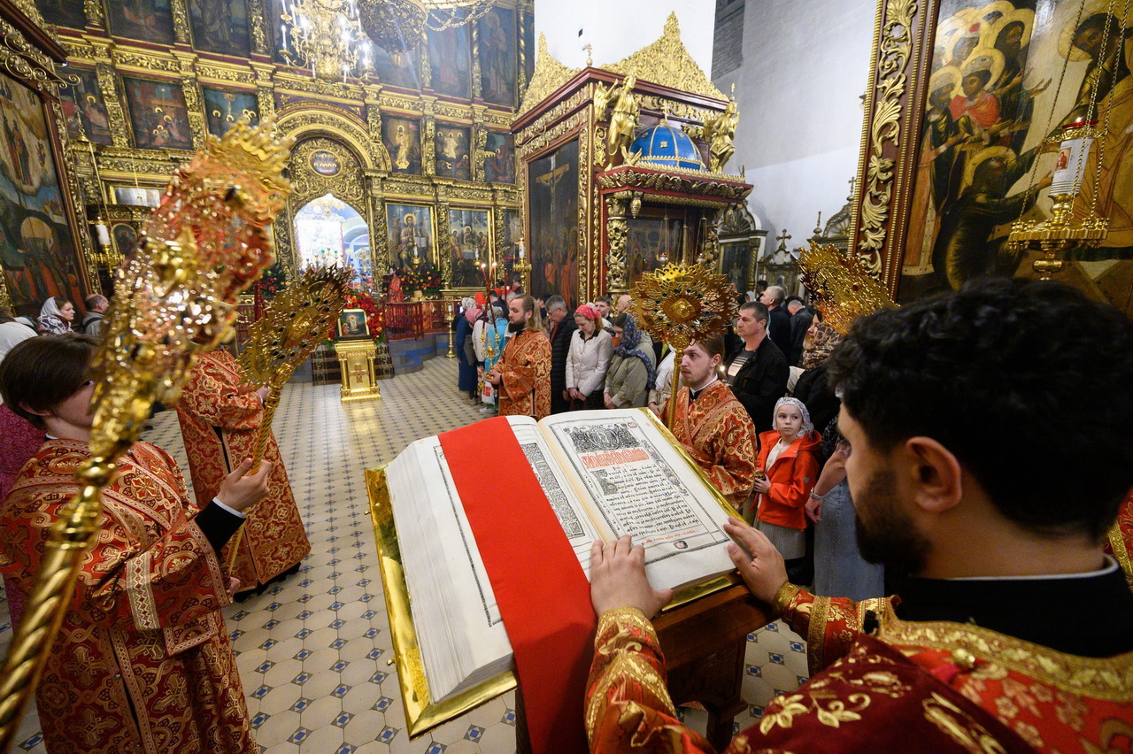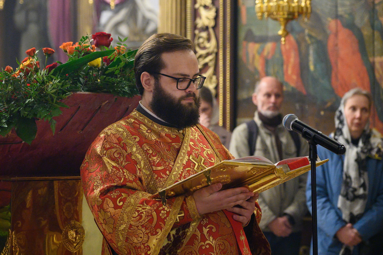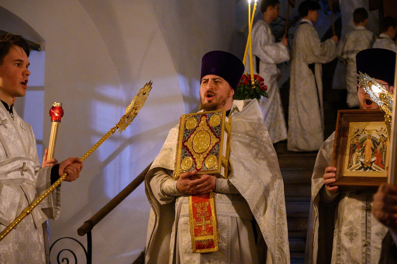 После пения праздничных стихир митрополит Матфей зачитал огласительное слово на Святую Пасху святителя Иоанна Златоустого.