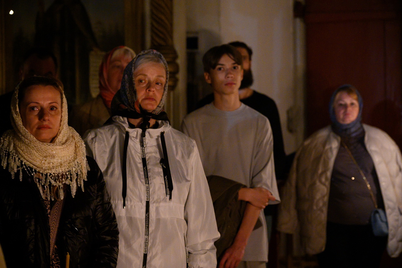 За торжественным богослужением в Пасхальную ночь в кафедральном соборе молились многочисленные прихожане, православные псковичи и паломники.
