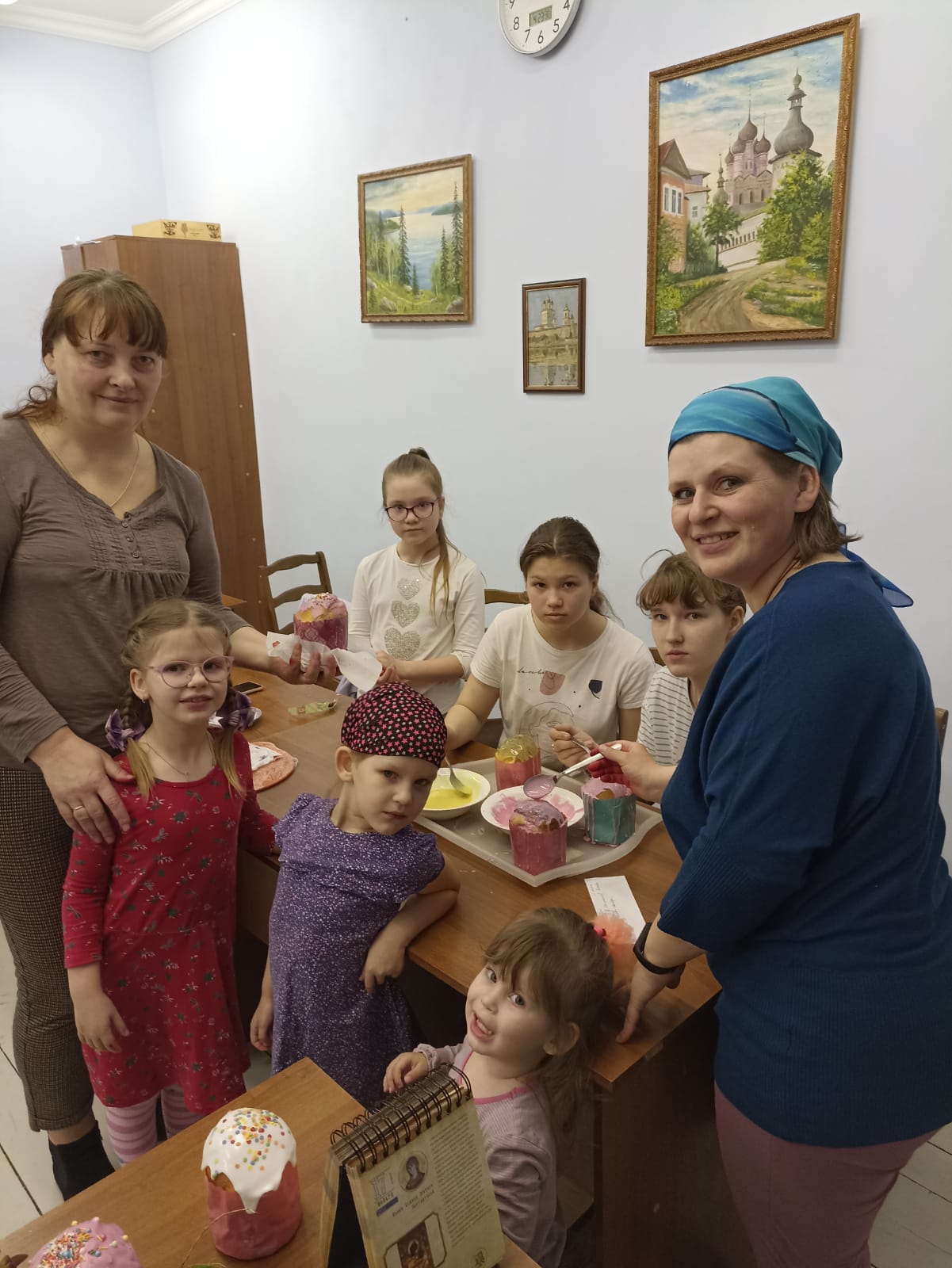 Ребята любят лепить на Библейские темы, исторические темы нашей страны. При изготовлении имбирных пряников, куличей, росписи их глазурью, например, к Пасхе, лепке и выпечке печенья в виде лестниц к неделе Иоанна Лествичника, печенья к Рождественским праздникам дети буквально «светятся от счастья.