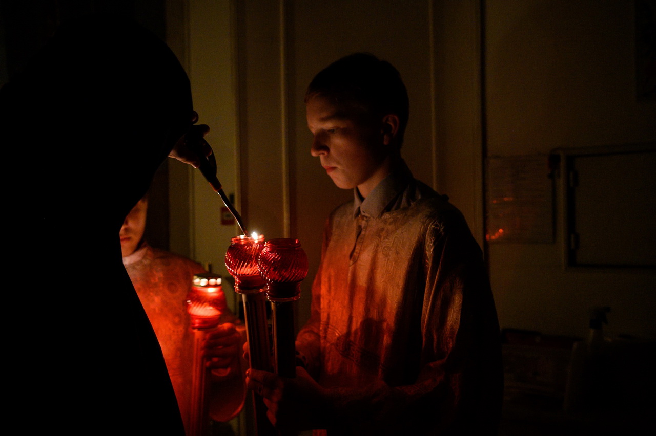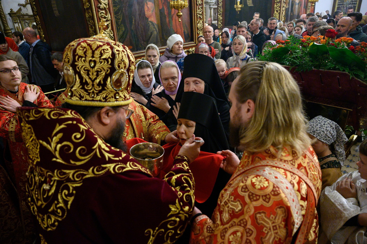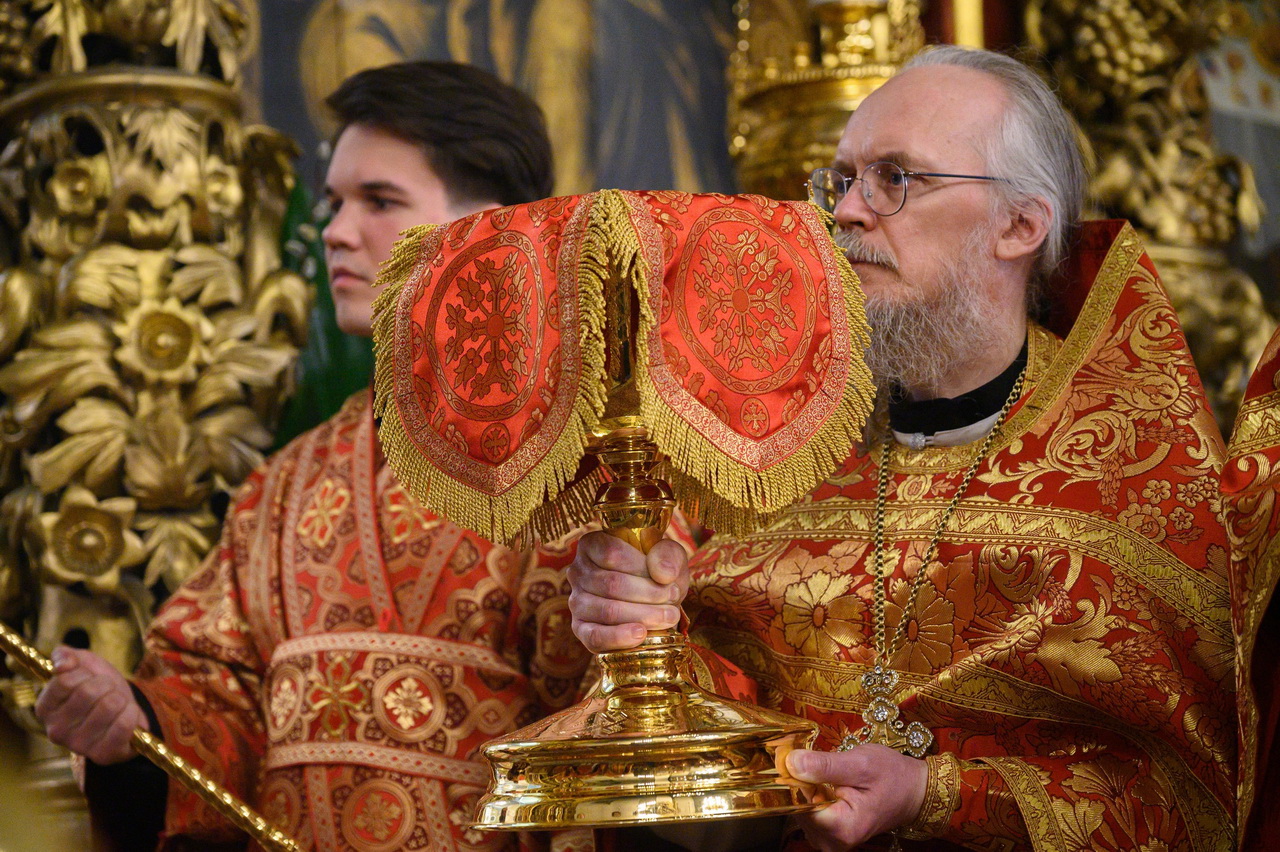 После пения праздничных стихир митрополит Матфей зачитал огласительное слово на Святую Пасху святителя Иоанна Златоустого.