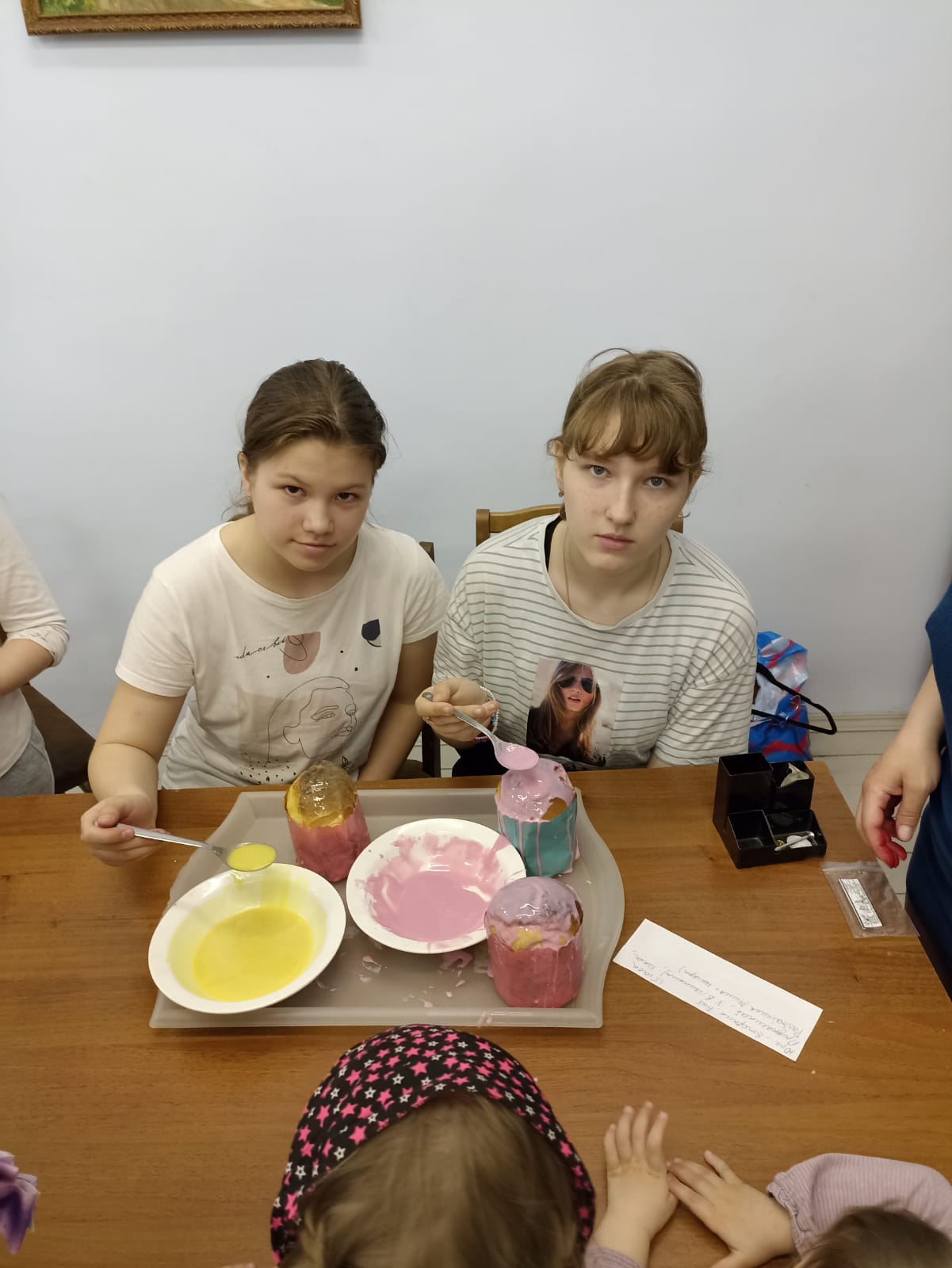 Ребята любят лепить на Библейские темы, исторические темы нашей страны. При изготовлении имбирных пряников, куличей, росписи их глазурью, например, к Пасхе, лепке и выпечке печенья в виде лестниц к неделе Иоанна Лествичника, печенья к Рождественским праздникам дети буквально «светятся от счастья.