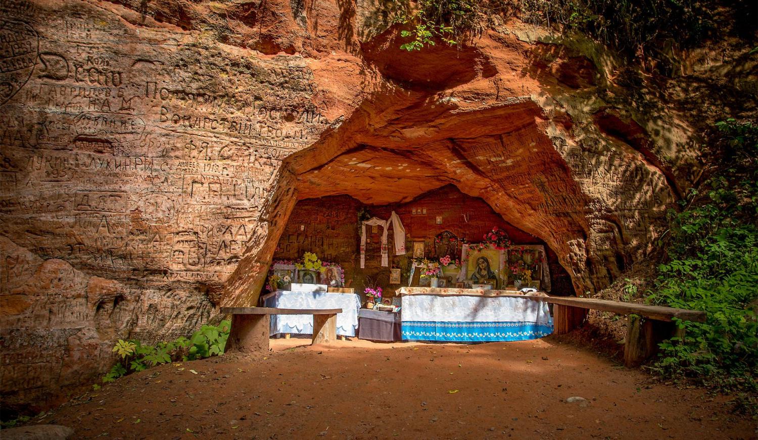 Трутневские пещеры – это уникальный памятник природы, настенные надписи, камни-следовики I тысячелетия нашей эры, пещерная церковь. Стены пещеры испещрены надписями паломников. Чаще всего это имена и иногда даты, самая ранняя, которую удалось разобрать исследователям, от 1888 года. Территория вокруг пещеры ухожена и облагорожена. Спуск оборудован хорошей железной лестницей, поставлены скамеечки и через речку перекинуто два очень живописных мостика. Очень чисто и уютно. В этом месте река Кунесть образует глубокий каньон из красного плотного песчаника, возникновение этих отложений очень древнее. Так что, прикасаясь к стенам Пещёрки, как называют ее местные жители, можно прикоснуться к Вечности.